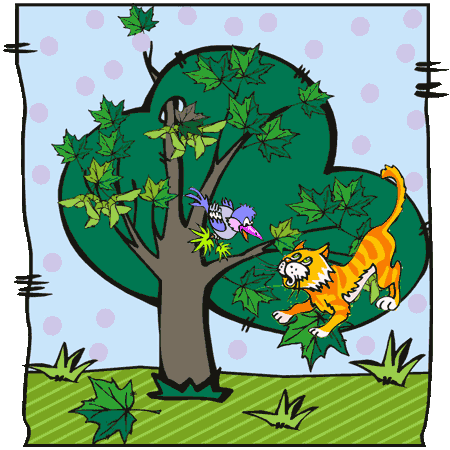 Die Amsel schimpft; sie sieht die Katze.